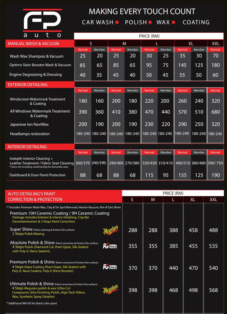 We offer a wide variety of services for both exterior and interior; from a regular wash and wax, to protective coating and polish, as well as engine and upholstery cleaning.