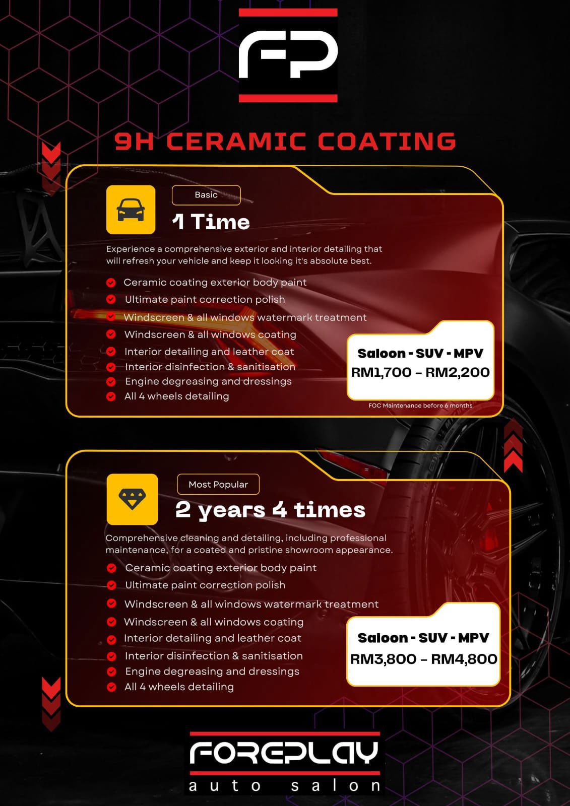 Our only objectives is for your car to be looking brand new, and most importantly, a peace of mind when your vehicle is treated by Foreplay Auto Salon..